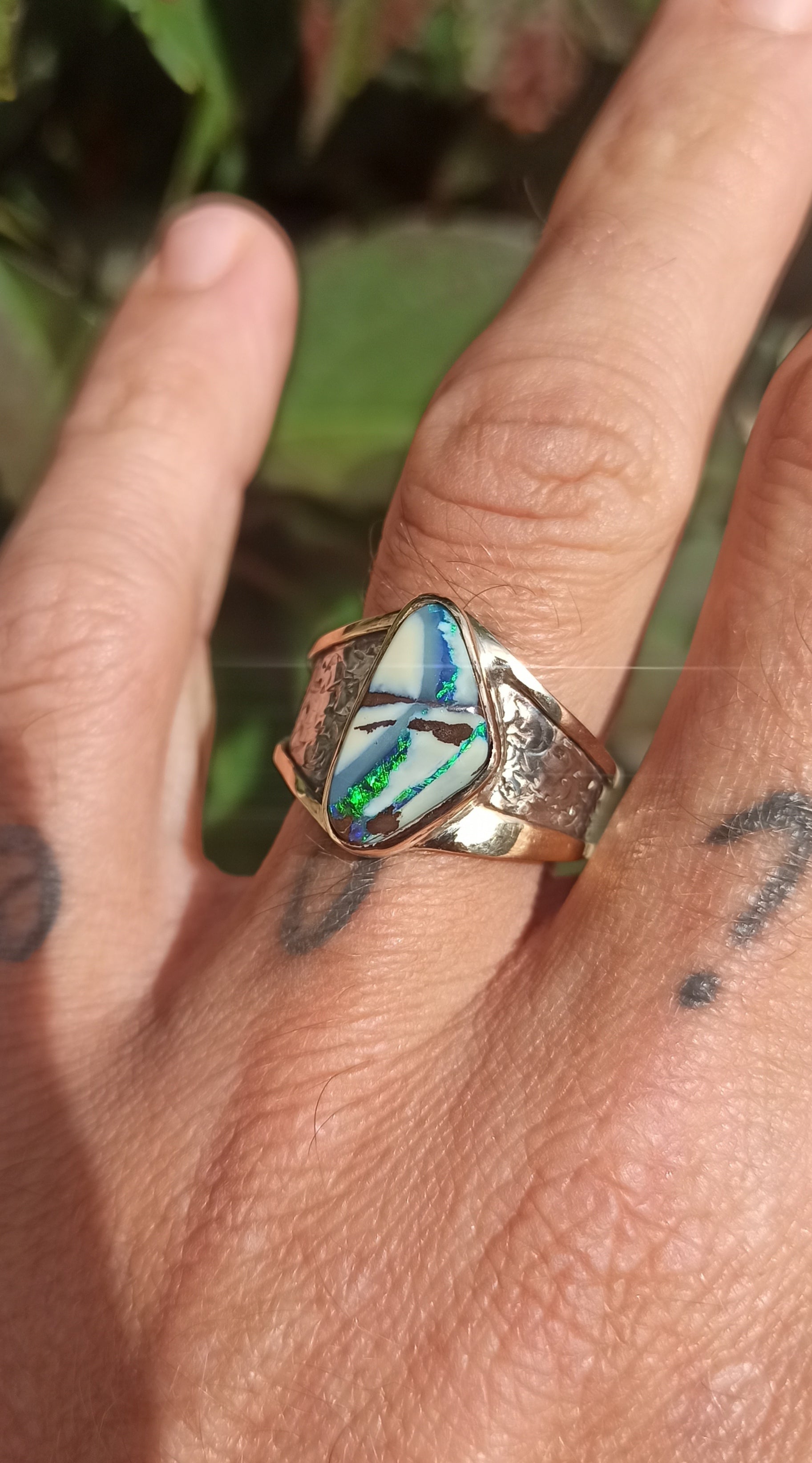 Bague Argent et Or 18cts ~ Opale Boulder, Australie