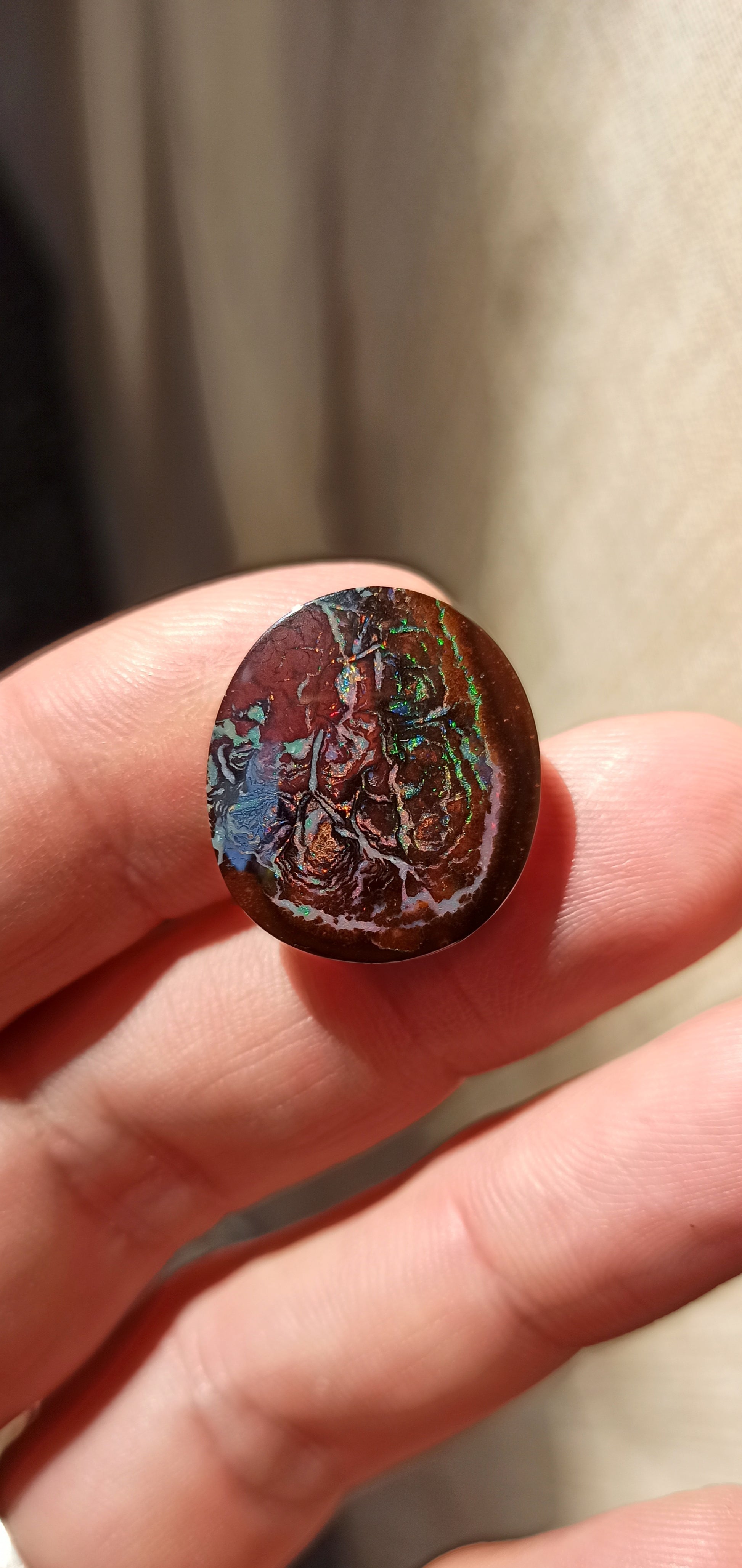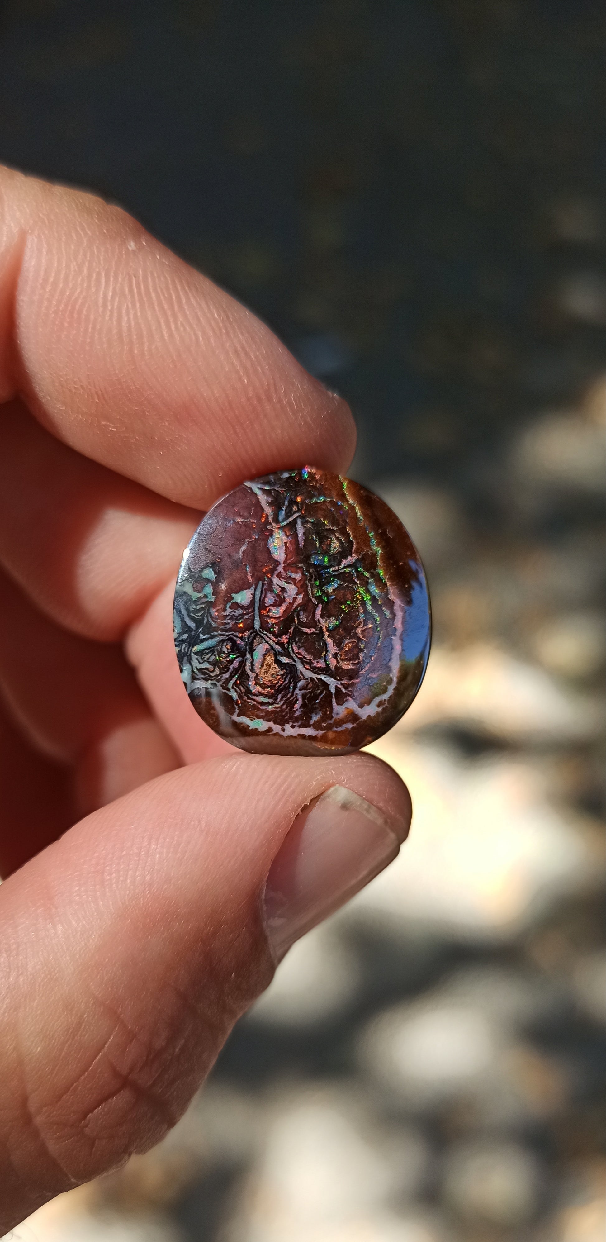 L'Opale Boulder, littéralement "Opale Rocher", est composée de veines d'Opale précieuses prises dans une roche hôte plus ancienne (roche ferreuse, bois fossile, sable...etc).