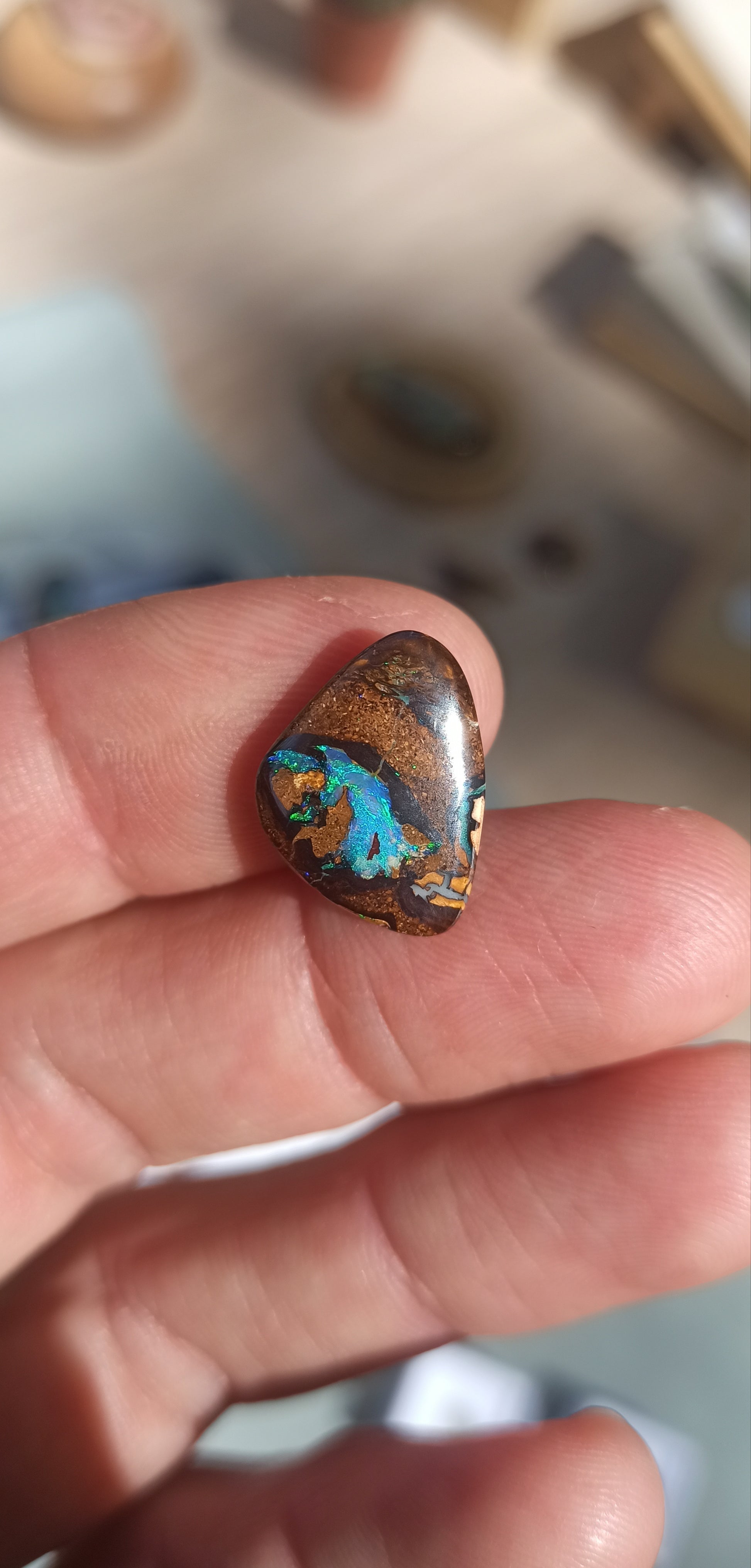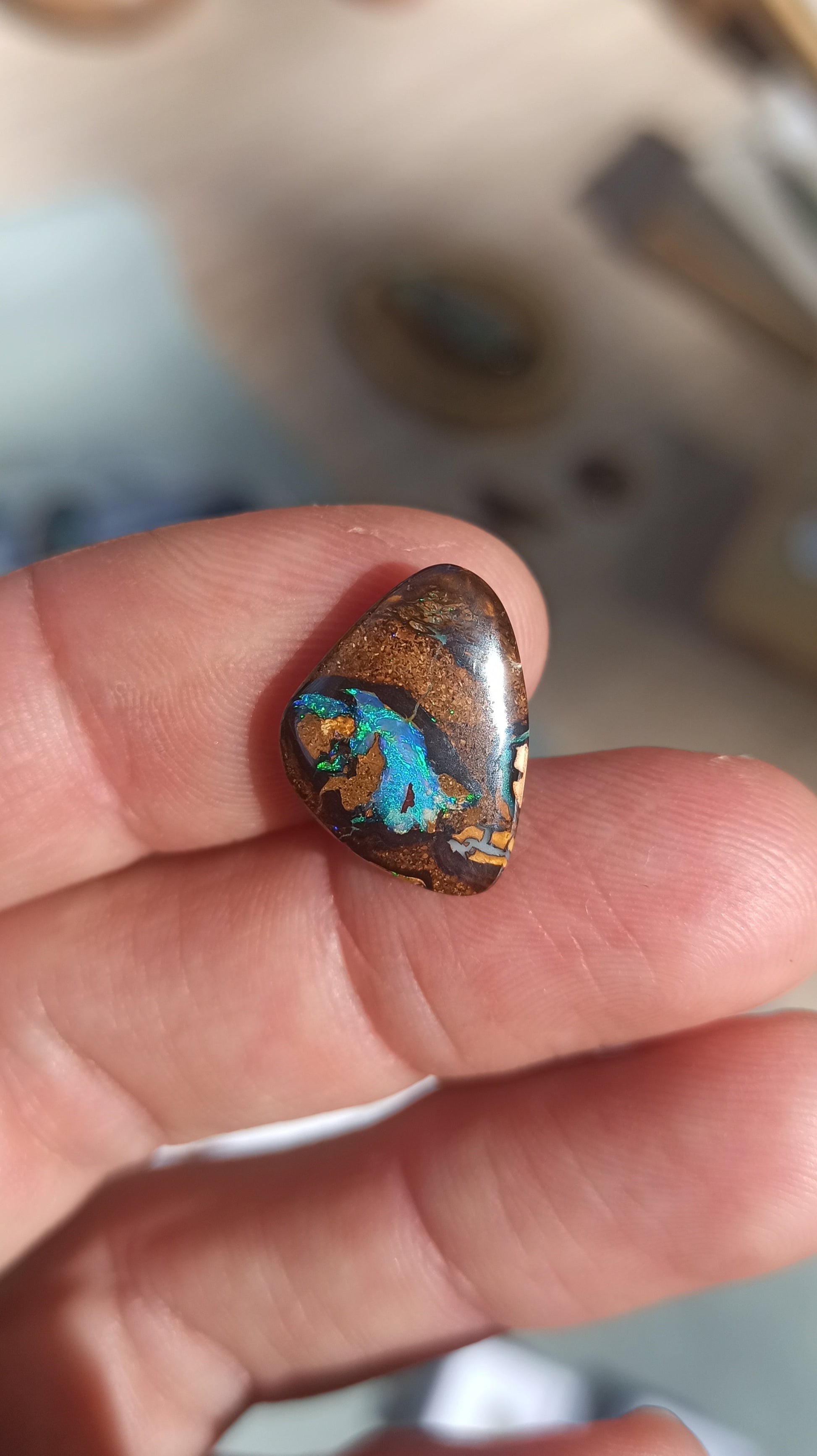 L' Opale Boulder , littéralement " Opale Rocher ", est composée de veines d'Opale précieuses prises dans une roche hôte plus ancienne (roche ferreuse, bois fossile, sable...etc).