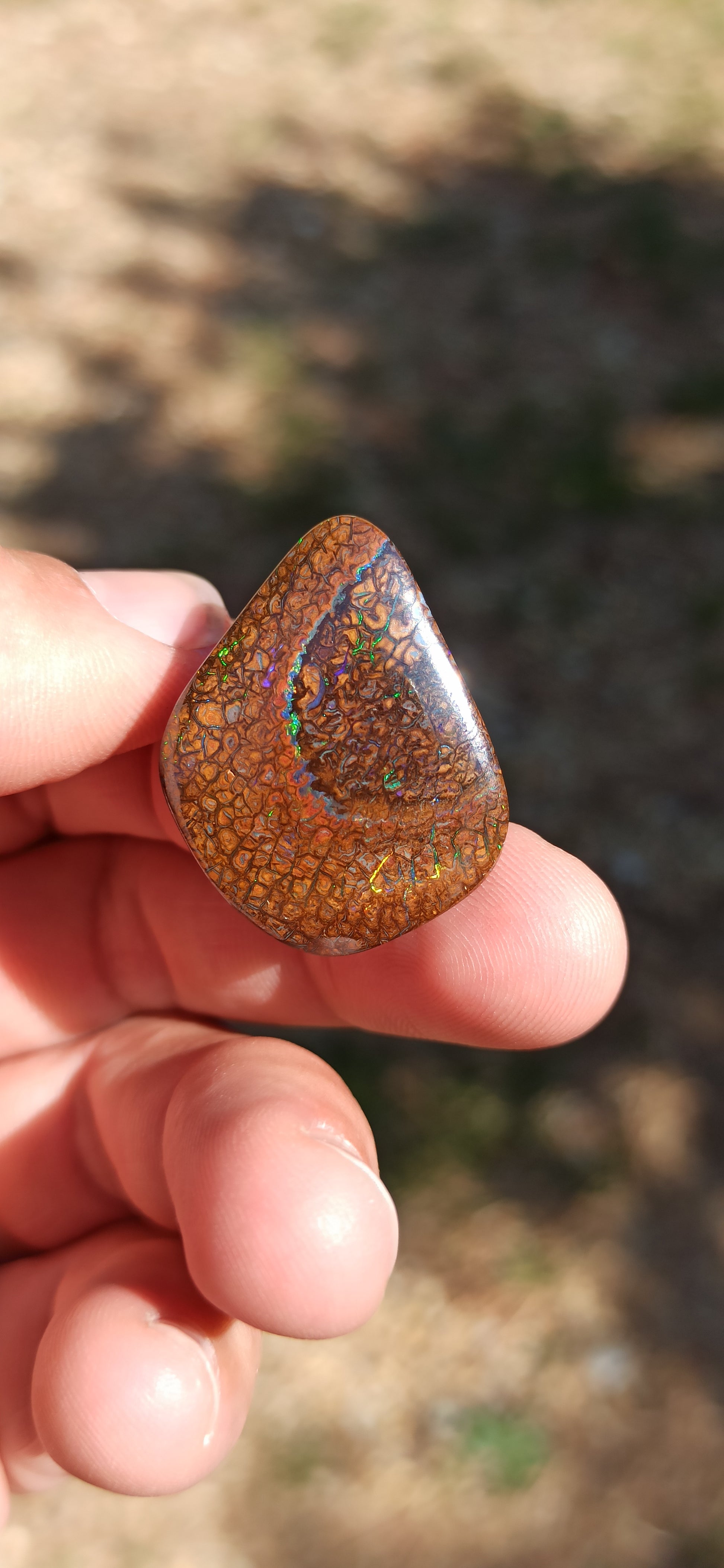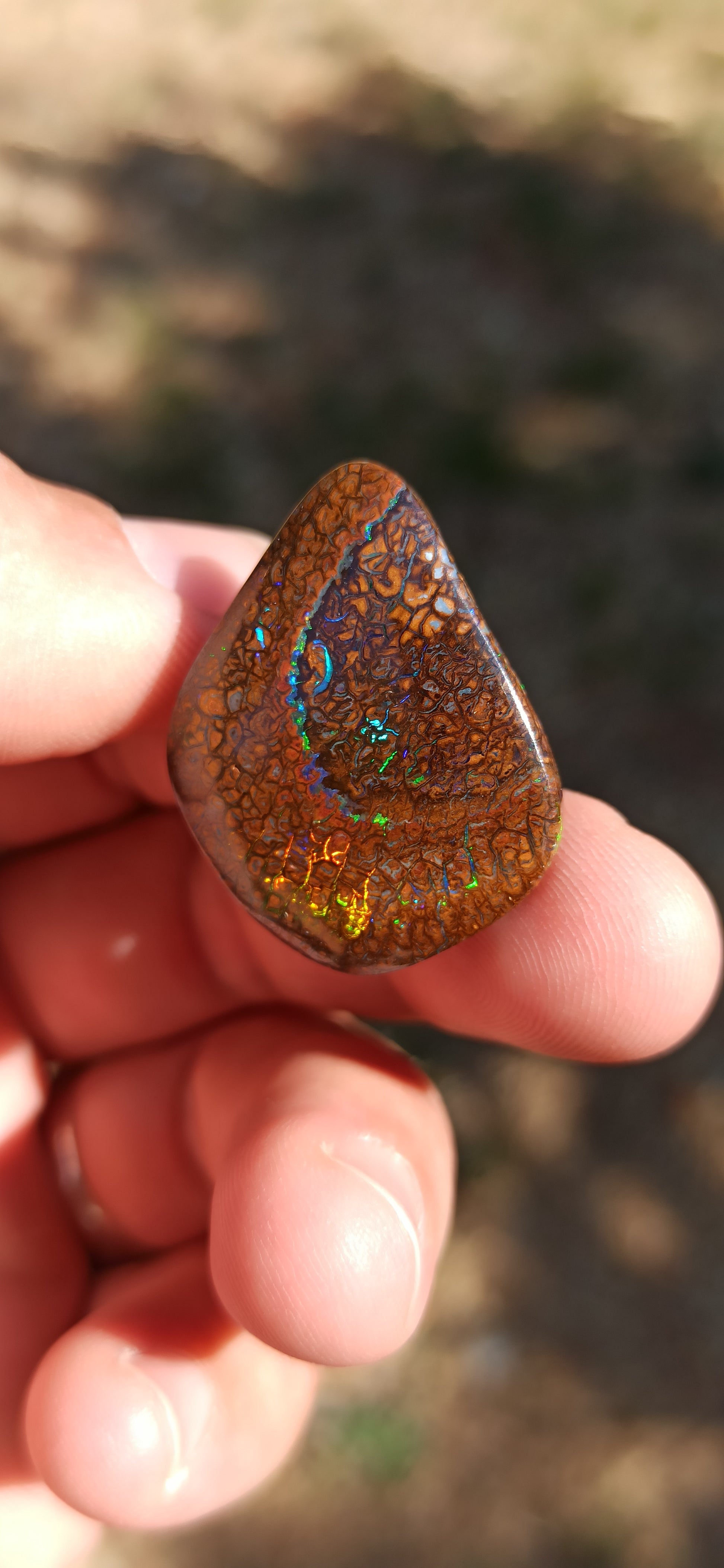 L'Opale Boulder, littéralement "Opale Rocher", est composée de veines d'Opale précieuses prises dans une roche hôte plus ancienne (roche ferreuse, bois fossile, sable...etc).
