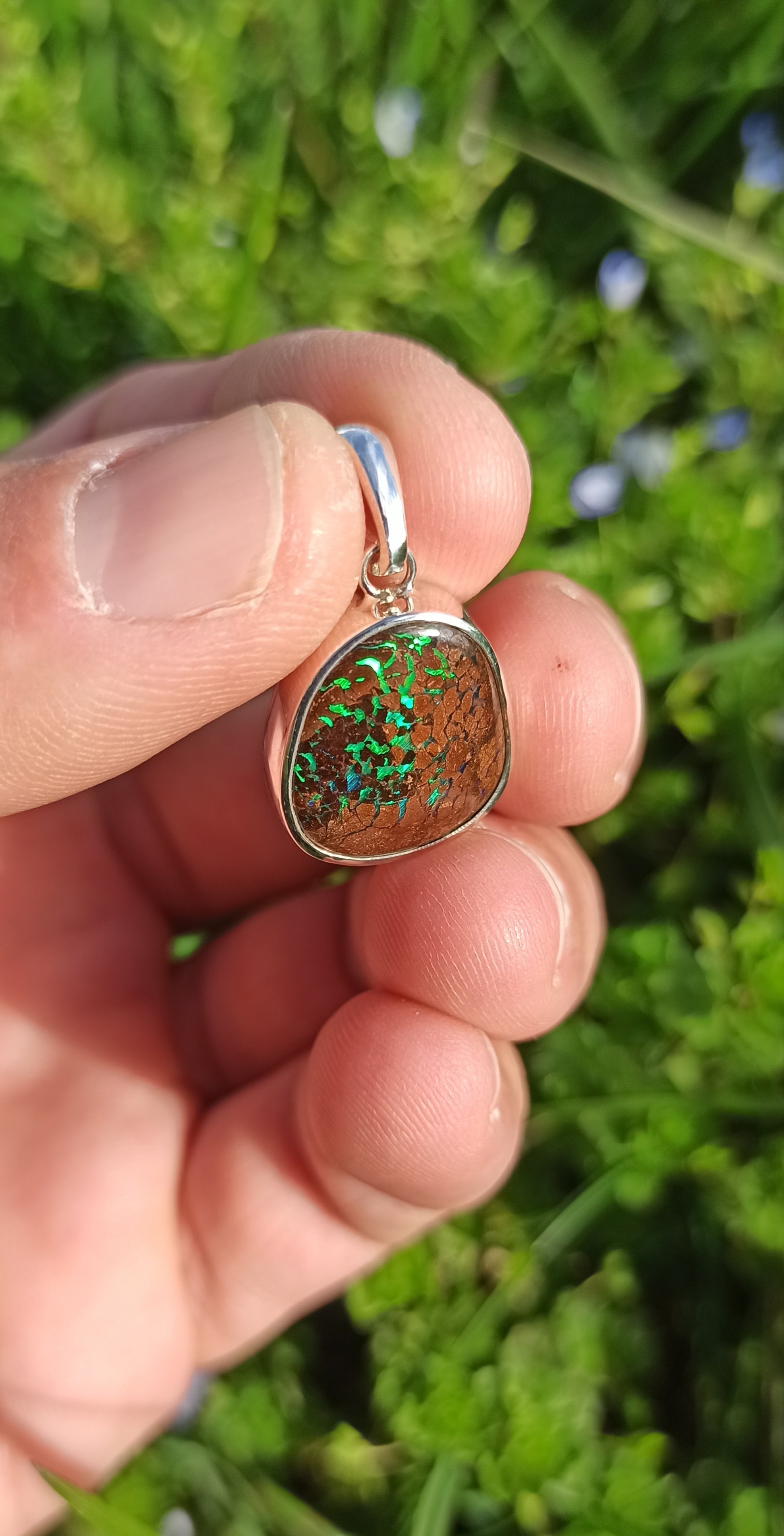 Pendentif Argent ~ Opale Boulder de Winton, Australie