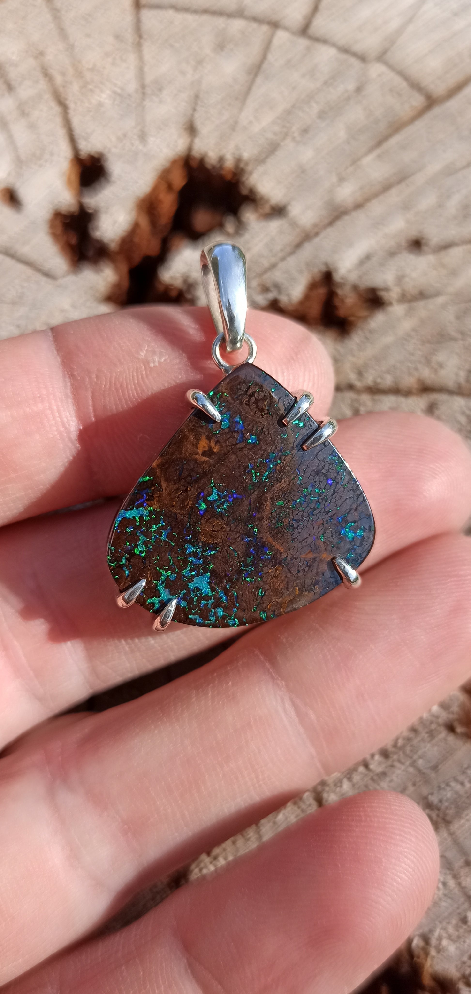 Pendentif en Argent 950 réalisé à la main avec une magnifique Opale Boulder en provenance d'Australie.
